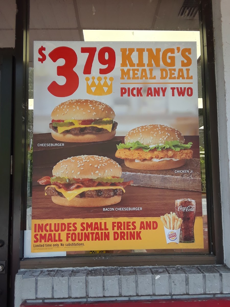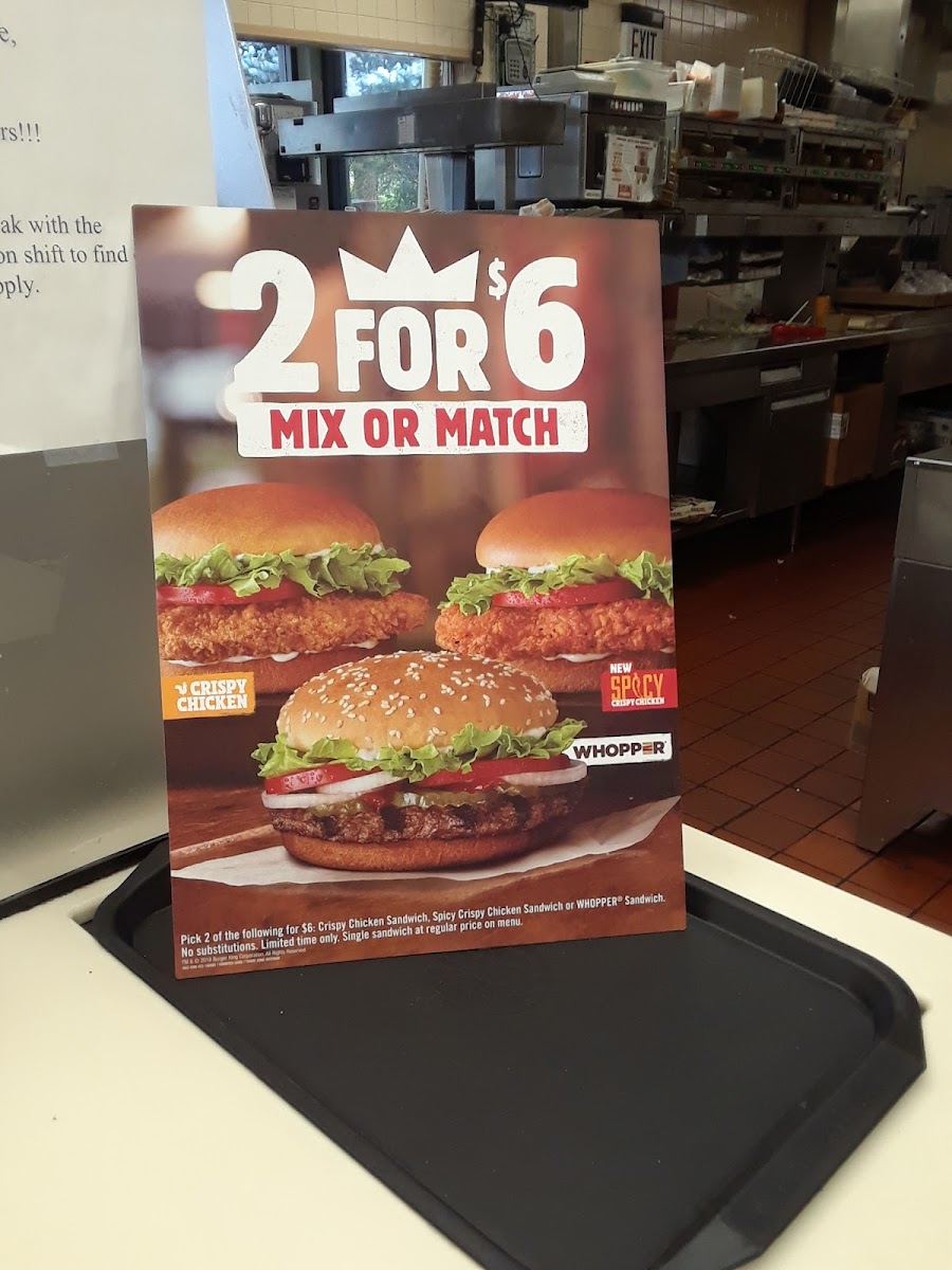 (4) Whopper Sandwiches or Original Chicken Sandwiches, (4) Medium Fries or Medium Onion Rings (Comes with one Zesty dipping sauce), (1) 8 Pc. Nuggets (Comes with choice of up to two sauces)